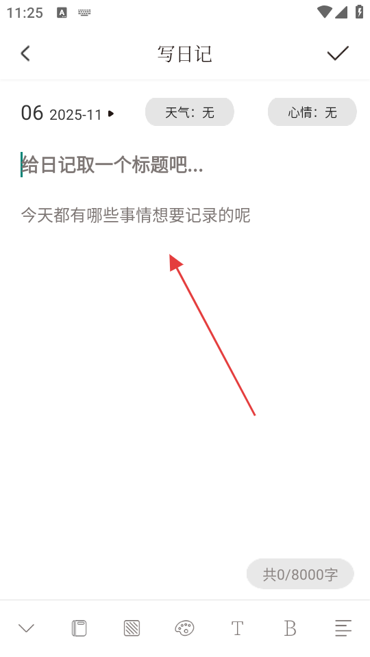 3在日记编辑界面,用户能够为当天的记录拟定标题,并把希望留存的日常内容撰写进去。