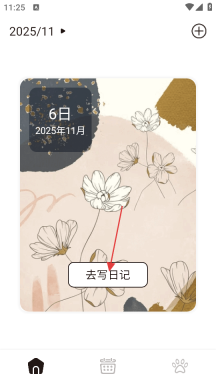 1、在日记界面里,找到【去写日记】按钮,点击该按钮就能进入日记编辑页面。