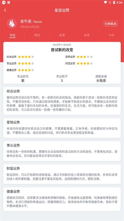 4还能了解当天、次日、这一周、这一个月甚至一整年的运气走向。