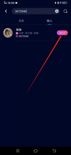 3在搜索结果中找到目标用户后,点击其右侧的“处CP”按钮,即可完成好友添加操作。