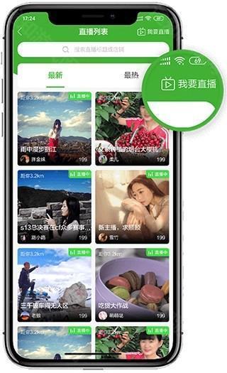 2、进入直播页面可以看到正在直播的直播间,同时选择“我要直播”按钮自己开直播。