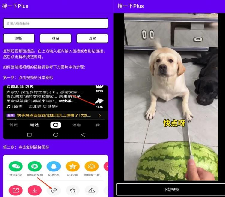2复制短视频链接后,在页面上方的输入框中输入或粘贴该链接,随后点击解析按钮即可完成操作。