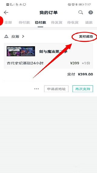 4. 支付成功后,便会显示所示的“成功参与”。