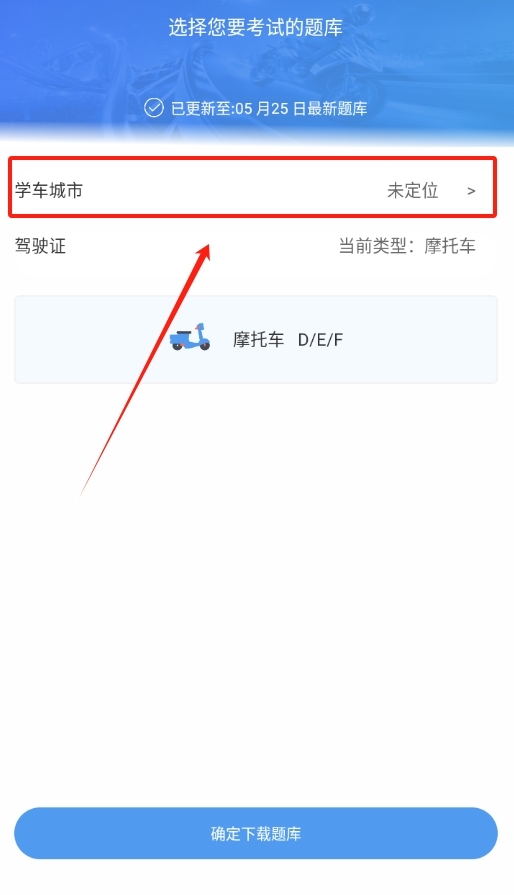 1首先选择你所在的城市地区,系统就会自动匹配当地最新的考试题库。