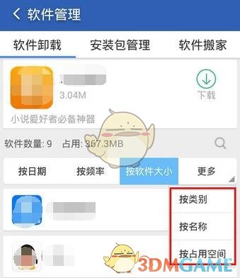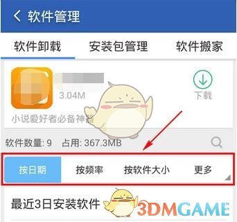 2、支持选择【按日期】、【按频率】、【按软件大小】等不同分类查看方式