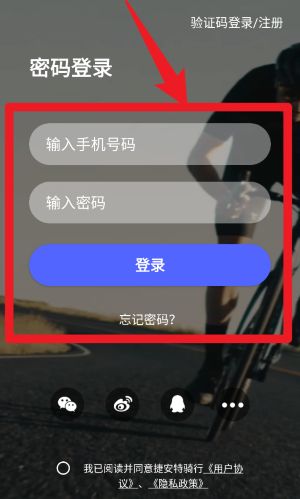 1、在登录页面输入已注册的手机号与密码,点击蓝色的“登录”按钮,就能迅速进入捷安特骑行应用的主界面。