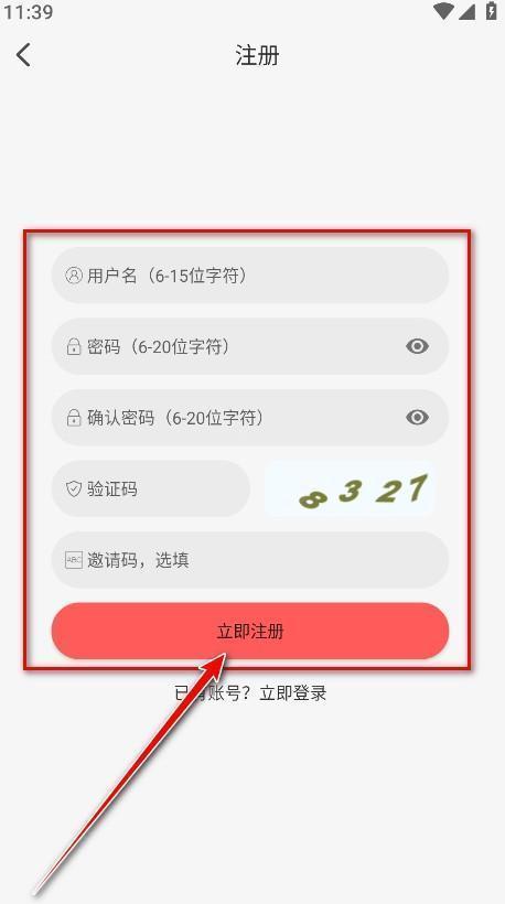 4.输入用户名、密码、确认密码、验证码,然后点击立即注册即可。