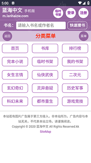 1、在蓝海搜书首页点击你喜欢的小说,点击图片和标题都能够进入
