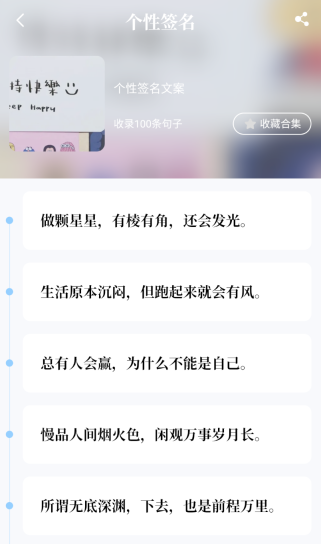 3以个性签名为例,点击该选项即可查看丰富的签名文案。