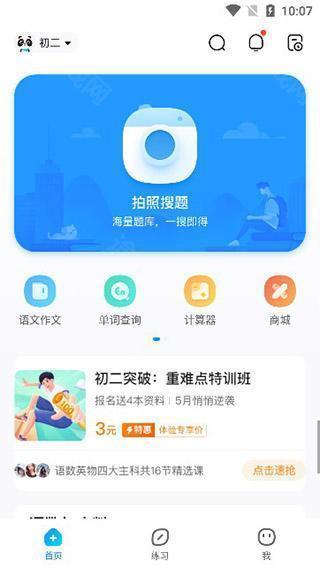 3、在首页当中,我们可以看到一个非常实用的拍照搜题功能;