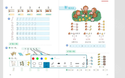 ⑥画笔批注:点击弹出画笔工具,可以在教材页面涂写。