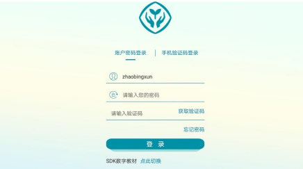进入登录界面,选择账户密码登录,输入正确的用户名、密码、验证码后,选择正确的用户登录身份(默认为SDK数字教材)即可登录成功.