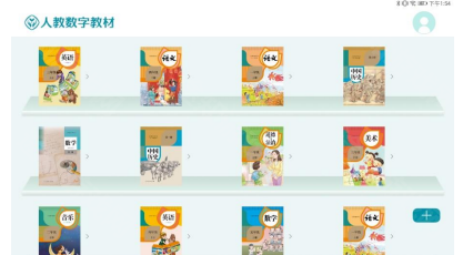 登录后会进入的数字教材书架页面,显示页面为个人书架,点击“+”可以更多的教材到个人书架。