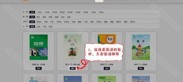 2、根据年级、课程、出版社、分类选择需要激活的书籍,并点击教材下的“激活”按钮