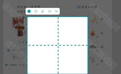 ⑥涂写类试题:点击图标,弹出菜单,选择作答,弹出工具栏,可以选择笔形,颜色及粗细等,直接在教材页面涂写,点击菜单查看答案。