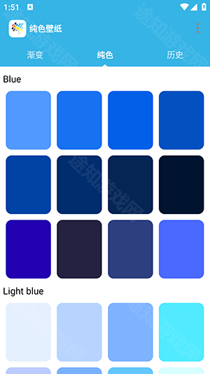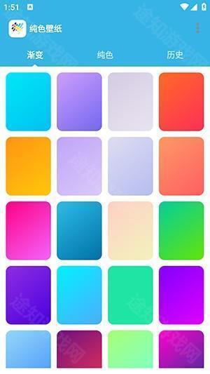 1、打开软件后,可以看到软件提供了渐变壁纸以及纯色壁纸两个类型。
