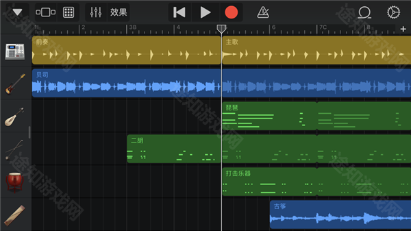 3、触摸乐器、音频录音和乐段录制混音。