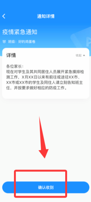 4、点击对应任务并完成确认收到,随时查看孩子的作业反馈和在校表现,及时了解情况。