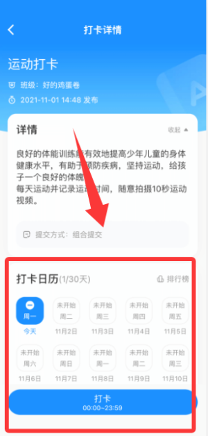 3、参与每日健康打卡或阅读打卡,点击对应任务并完成确认收到,培养孩子规律的学习生活习惯。