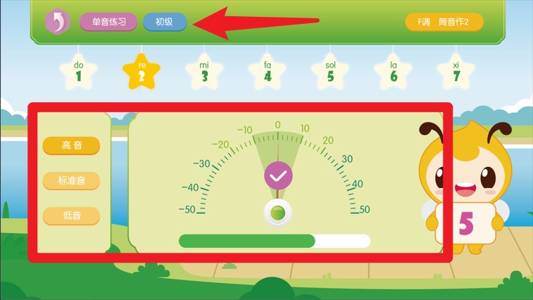 4、单音练习界面显示音高检测仪,演奏对应音符时可查看准确度,帮助调整音准水平。