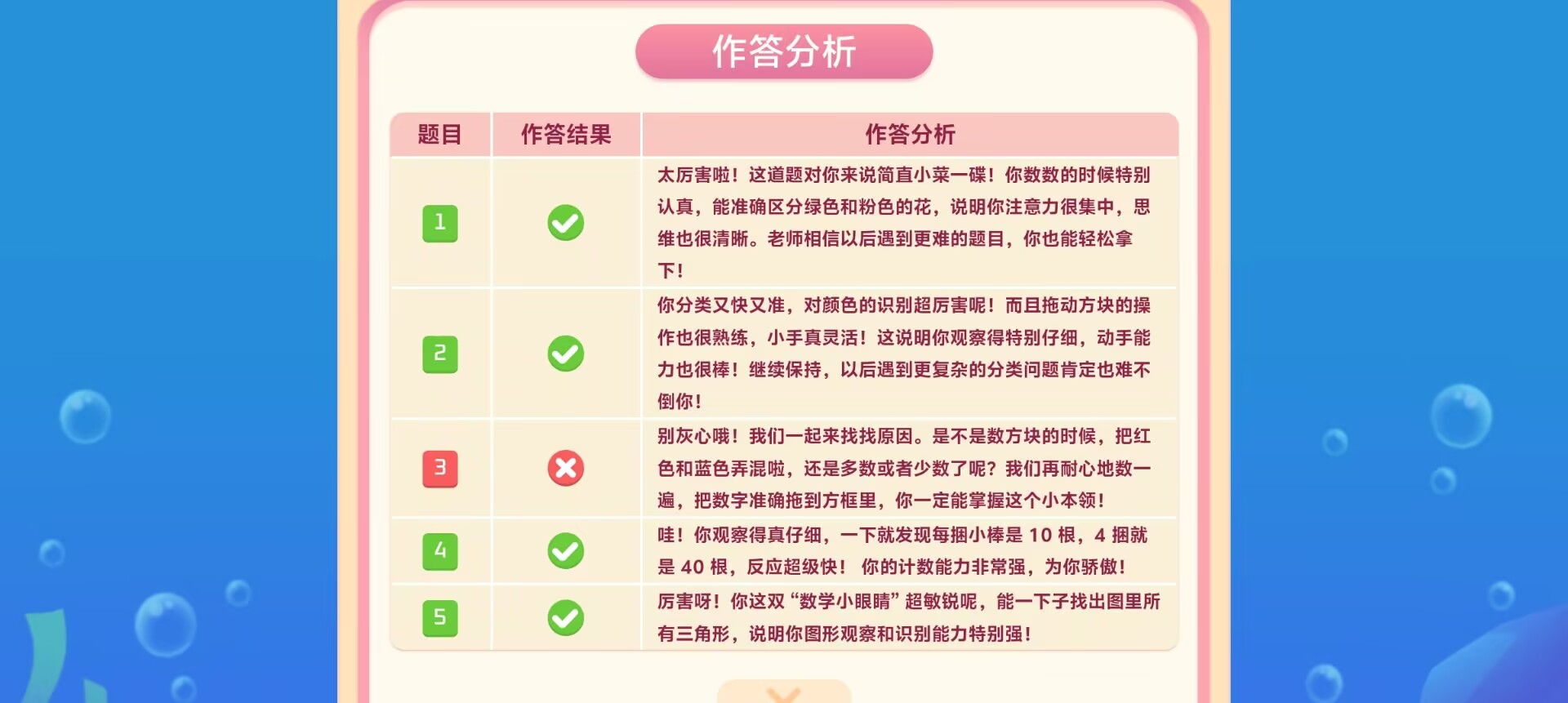 4、个性化学习报告:用户可随时查看孩子专属的个性化学习报告,以便精准掌握孩子的学习进度情况。
