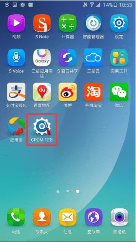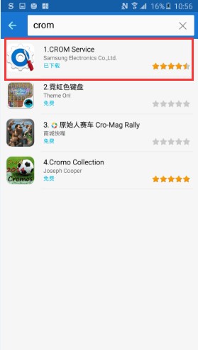 1、打开手机,进入三星应用商店,搜索并安装CROM Service。
