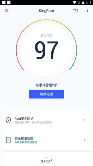 KingRoot是一款手机管理工具软件,能帮您解决手机发热问题,实现安全升级,root升级方案会通过云端推送,只需简单几步就能快速获取root权限,装卸操作超级简单,具有操作便捷、步骤清晰且支持多款手机品牌等优势,为用户提供优质服务,并且使用安全又免费,感兴趣的用户欢迎来本站安装体验!