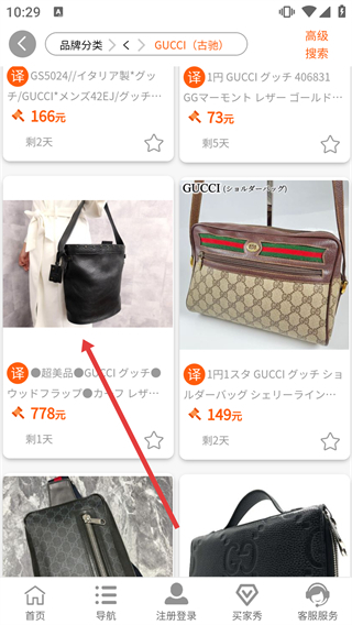 3、在古驰的商品列表里挑选好想要的商品后,点击进入该商品的详情页面。