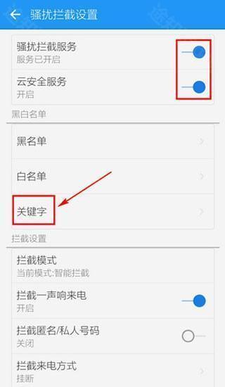 4、打开【骚扰拦截服务】、【云安全服务】后的按钮