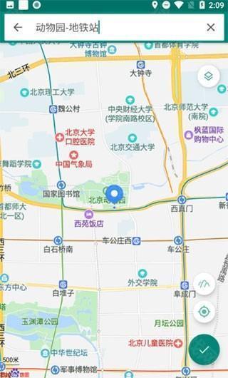 3、在地图里搜索你想要模拟的位置,然后点击右下角的勾号按钮;