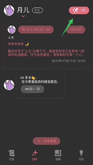 2、然后进入陪伴界面下点击右上角的数字小图标
