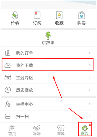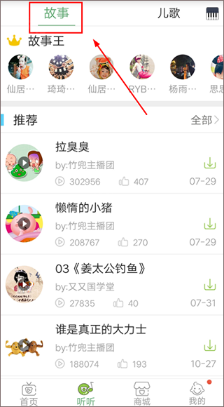 1、打开登录竹兜育儿,点击首页下方【听听】