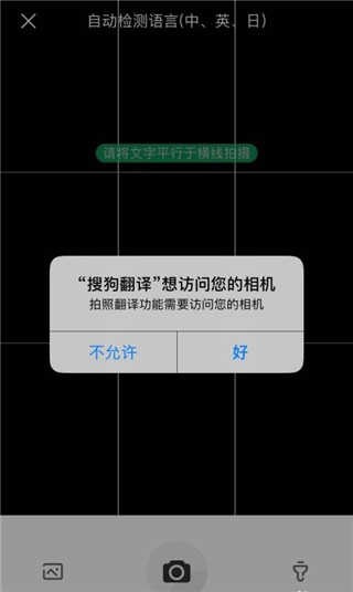 6、允许软件访问权限:说起第三个功能的话,我们是需要先让搜狗翻译允许相机权限的,因为需要用到拍照功能,在一开始打开软件的时候,数据访问的权限,通知的权限建议大家都去开启。