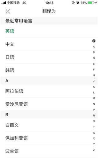 5、我们可以自由选择语种:不过这个功能的好处是,它不单单是转换英语,软件里了非常多的语种,我们可以切换语种,然后我们说出的中文就可以翻译成各个语种用在不同的途径了。