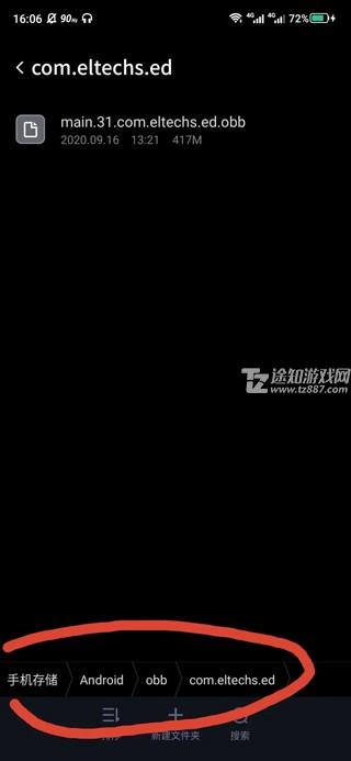 6、将数据包main.31.com.eltechs.ed.obb移动或复制到Android→obb→com.eltechs.ed文件夹中。
