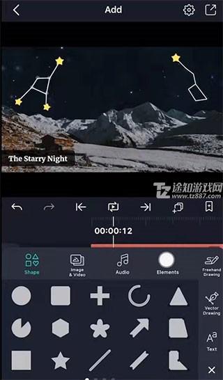 6、支持添加形状、文本、媒体(包括手机中的图片、音乐与视频)、图纸以及各类元素。