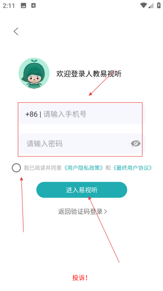 4、填写好【手机号与密码】,并【勾选协议】后,点击【进入易视听】按钮,就能完成登录操作。