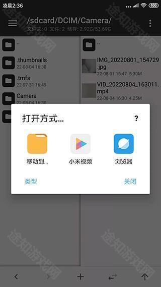 你可以对所有类型文件(除了没有后缀的文件)设置默认打开方式。例如 mp4 文件,由于MT并没有视频播放器,当你点击该类型文件时,将会弹出系统建议的视频播放器供您选择:
