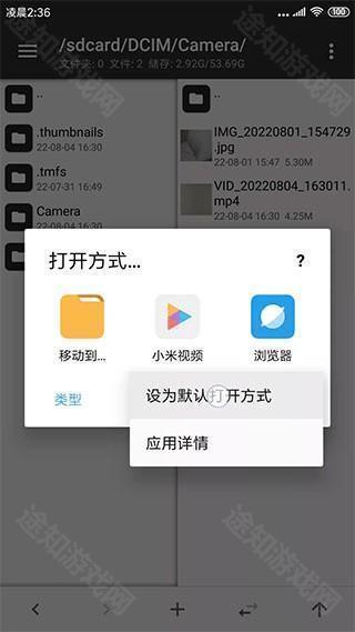 如果您习惯使用其中一个视频播放器,不希望每次打开前都要进行选择,那么可以长按该打开方式并将它设置为默认。这样你下次打开mp4文件时就可以直接播放视频了。