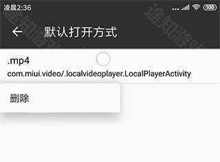 进入管理界面后长按指定类型并点击删除,就可以取消掉对mp4文件的打开方式设置。