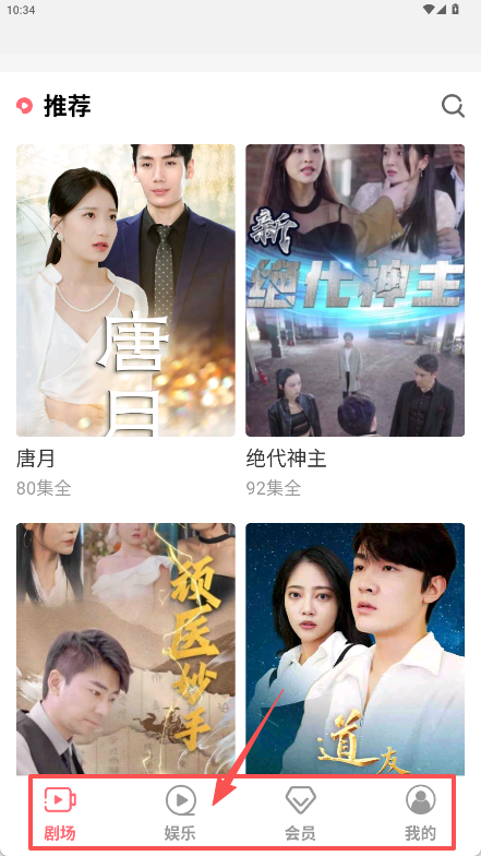 1、点手机应用推荐页,下方有剧场娱乐等导航栏。