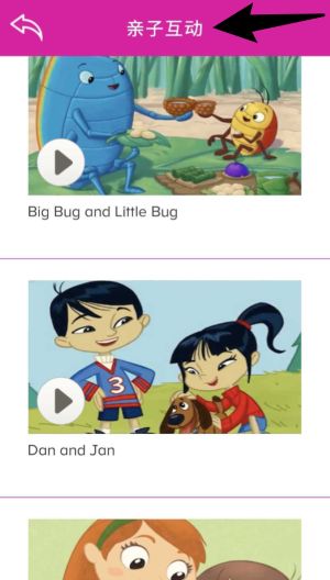 进入“亲子互动”板块后,家长和孩子能够一起观看平台精选的动画内容,以此促进亲子间的情感交流,同时助力英语语言学习成效的提升。