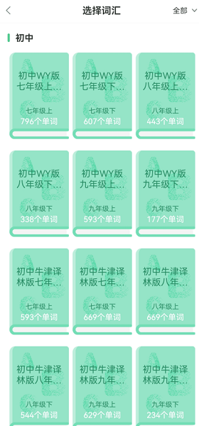 2、选择一本英语教材,这里面包含了小学、初中和高中各版本教材。