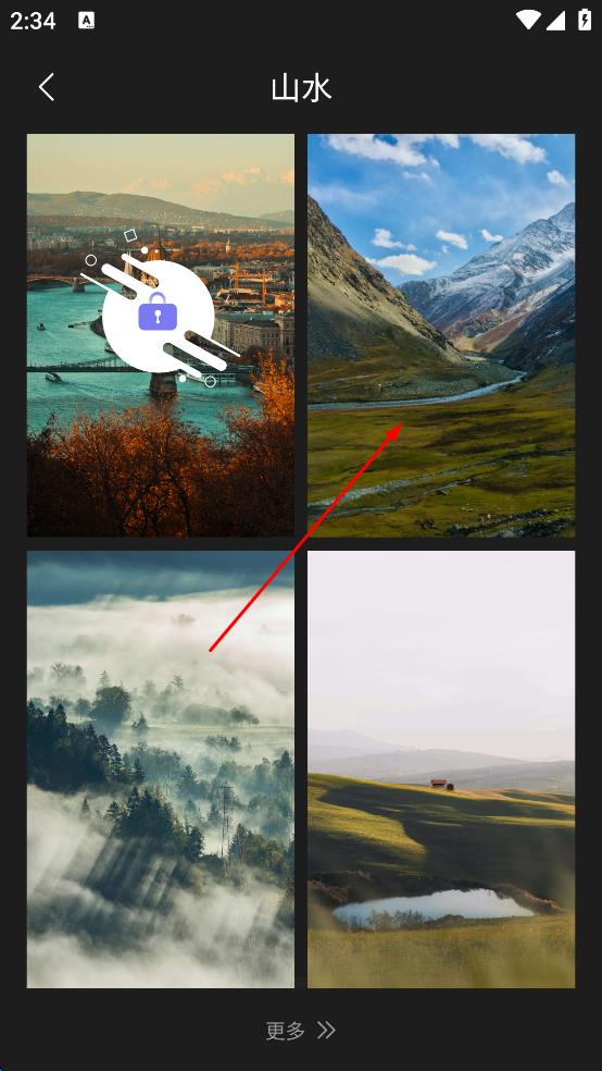 2、在山水壁纸列表中,选择你喜爱的山水壁纸,点击该壁纸即可进入详情展示页面。