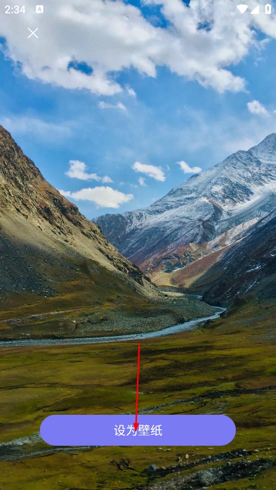 3、进入壁纸详情展示页面后,点击页面下方的“设为壁纸”按钮,随后根据提示操作,即可完成山水壁纸的设置。