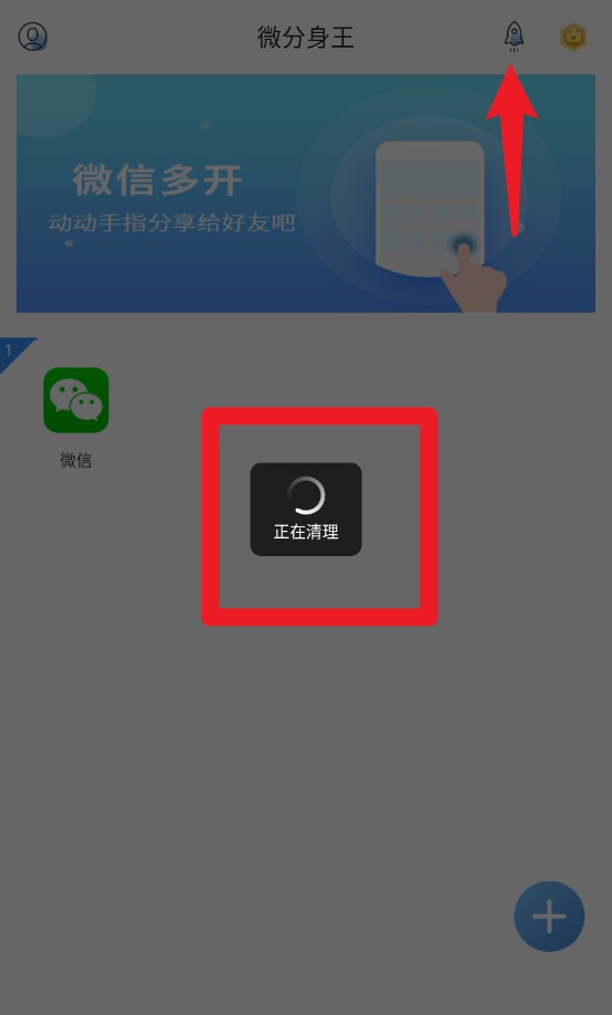5、点击右上角的火箭图标就能执行内存清理,让分身运行更顺畅,此时界面会显示清理中的状态。