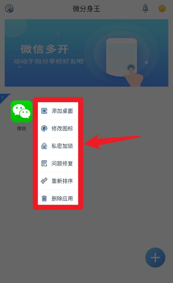 2、添加操作完成后,在主界面上能够看到已创建好的分身图标,点击该图标就可以启动分身应用。
