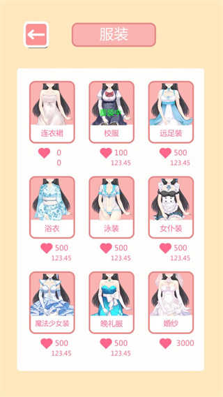 收集的爱心可兑换多样风格服装,涵盖学院风、女仆风、婚纱等多种类型。