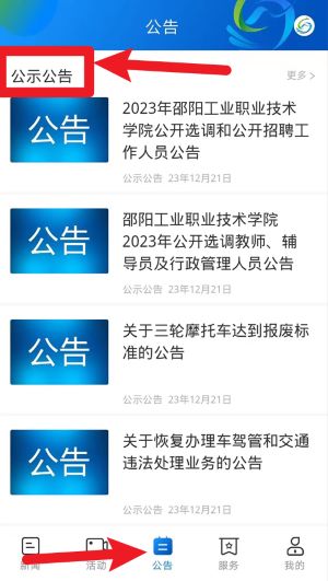 3、点击公告栏目进入公告公示页面,即可查看绥宁本地权威机构发布的各类政策及事务通知。
