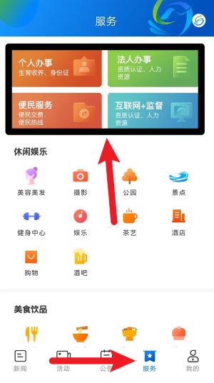 4、在服务页面里,能够选择个人办事、法人办事、便民服务等不同模块,以此达成本地政务的线上办理。